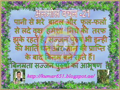 जवाब देंहटाएंराजेंद्र जी वाह क्या बात है छा गए आप, अनमोल वचन के साथ साथ प्रस्तुतिकरण का जवाब नहीं, अति सुन्दर प्रस्तुतिकरण हार्दिक बधाई .
